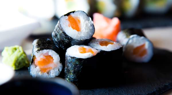 Combo de sushi con tu elección de base (arroz, tallarines o folios), proteína (pollo con almendras, ternera con pimiento o gambas con champiñones) y ensalada.