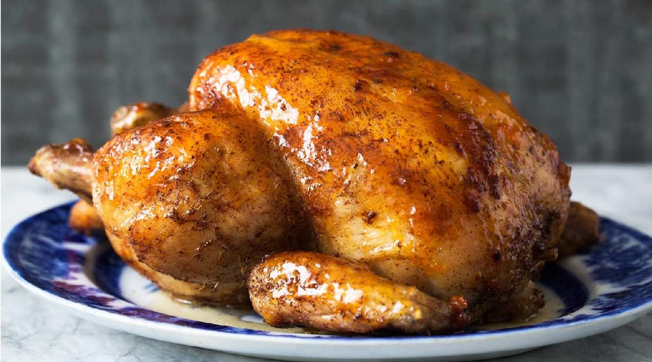 Pollo a l'ast con patatas, croquetas de pollo y jamón ibérico