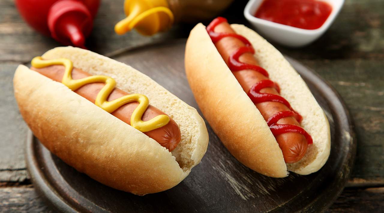 Ketchup , mostaza, queso y cebolla cruda