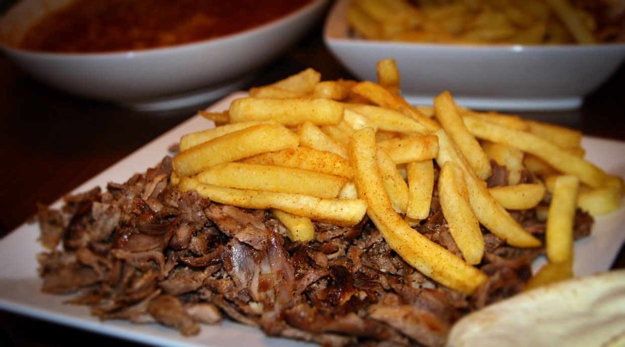 Durum alhorno(pollo+ternera+mixto)patatas+bebida