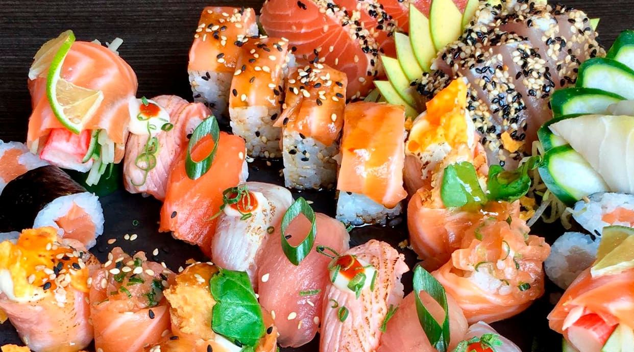 Bol d’arròs de sushi amb sashimi de salmó i tonyina lleugerament flamejat
