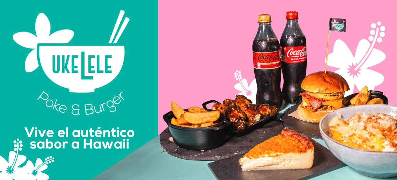 Carne angus, piña braseada, cebolla crujiente, bacon ahumado, quesos cheddar y gouda, y salsaUkelele.(Angus beef, grilled pineapple, crispy onion, smoked bacon, cheddar and gouda cheeses, and Ukelele sauce.)