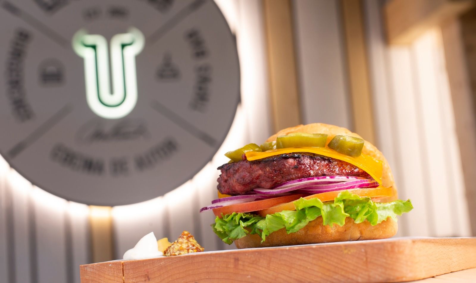200 gr de vaca vieja madurada, nuestro pan crujiente, emulsión de kimchi, queso DO San Simón ahumado, pepinillos encurtidos, barbacoa de ajo negro.