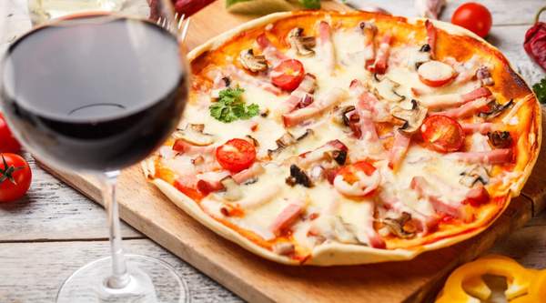 Tomate, mozzarella, jamón dulce, olivas negras, champiñones y alcachofas
