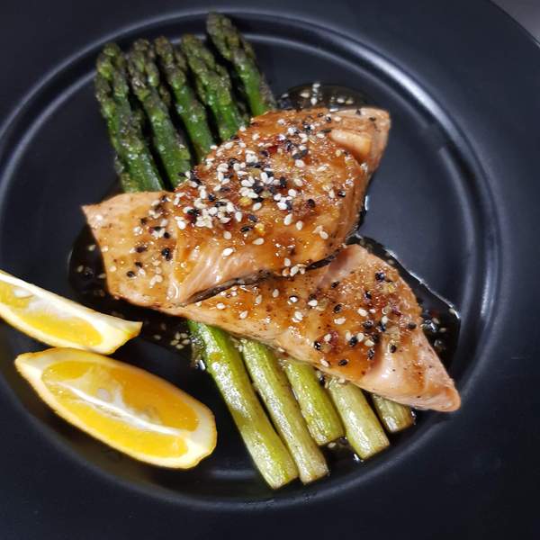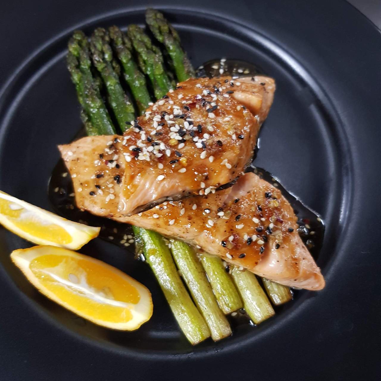 სალათი რომანო, სალათი აისბერგი, რუკოლა, კრევეტები, მანგო, ლაიმი, ჯინჯერი, პომიდორი ჩერი,