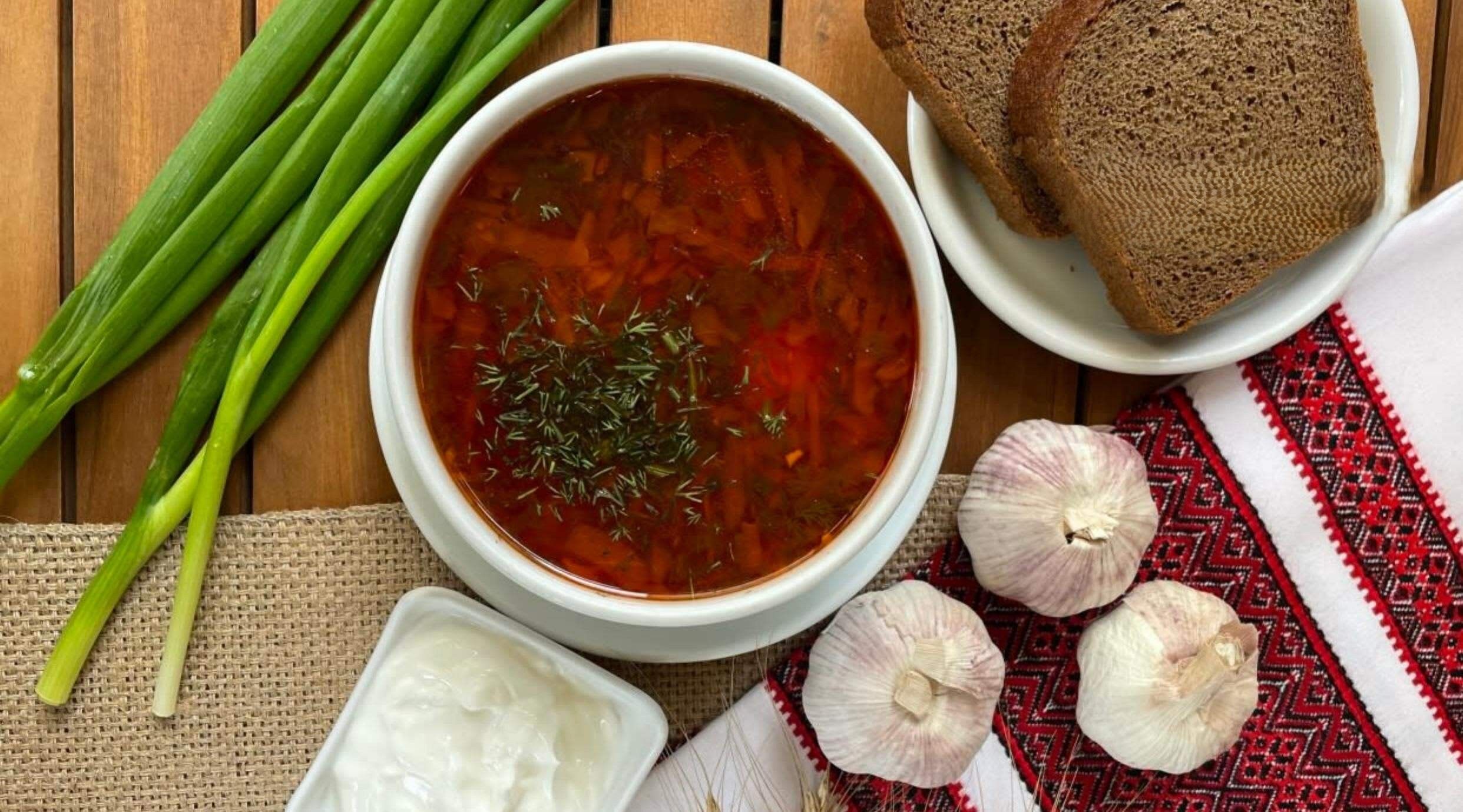 უკრაინული ბორში და შემწვარი სალა