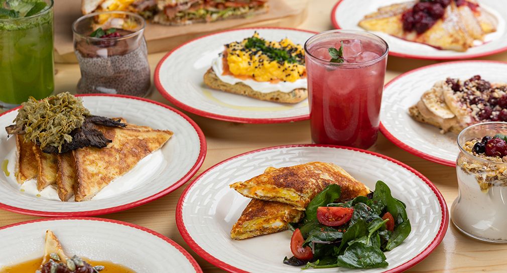 ჩაბატა, ავოკადო, ლაიმი , ზეითუნის ზეთი , პომიდვრის სალსა, რუკოლა, პორშირებული კვერცხი, მარცვლოვანი მდოგვი.