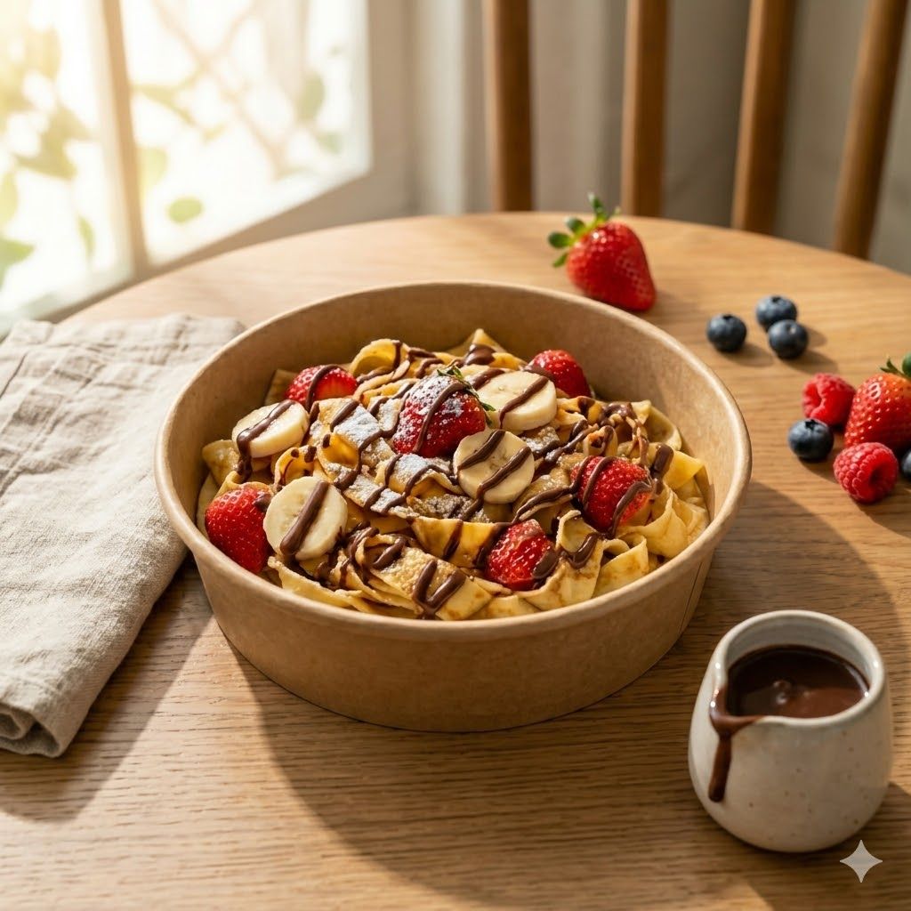 კვერცხი, ტოსტის პური,თაფლი, ბანანი, მოცვი, მარწყვი