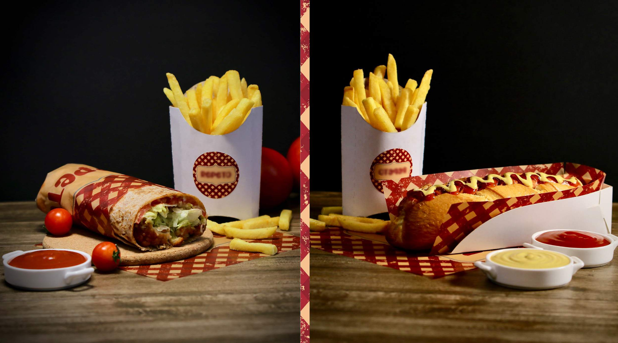 ჰოთდოგი საფირმო ცხარე, ფრი, სასმელი, სოუსი