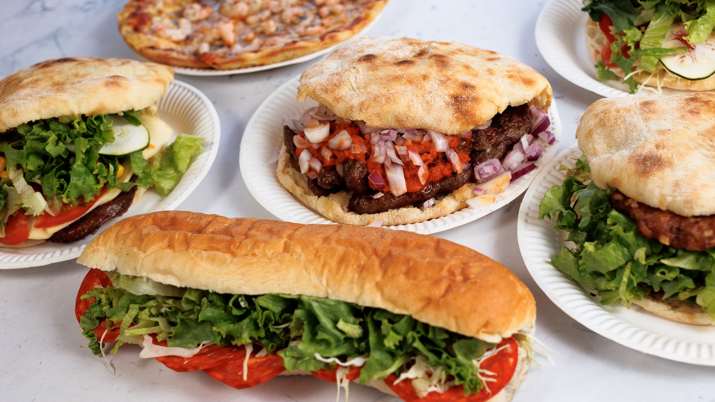 Kebap sa sirom u lepinji u pecivu i s prilozima po izboru