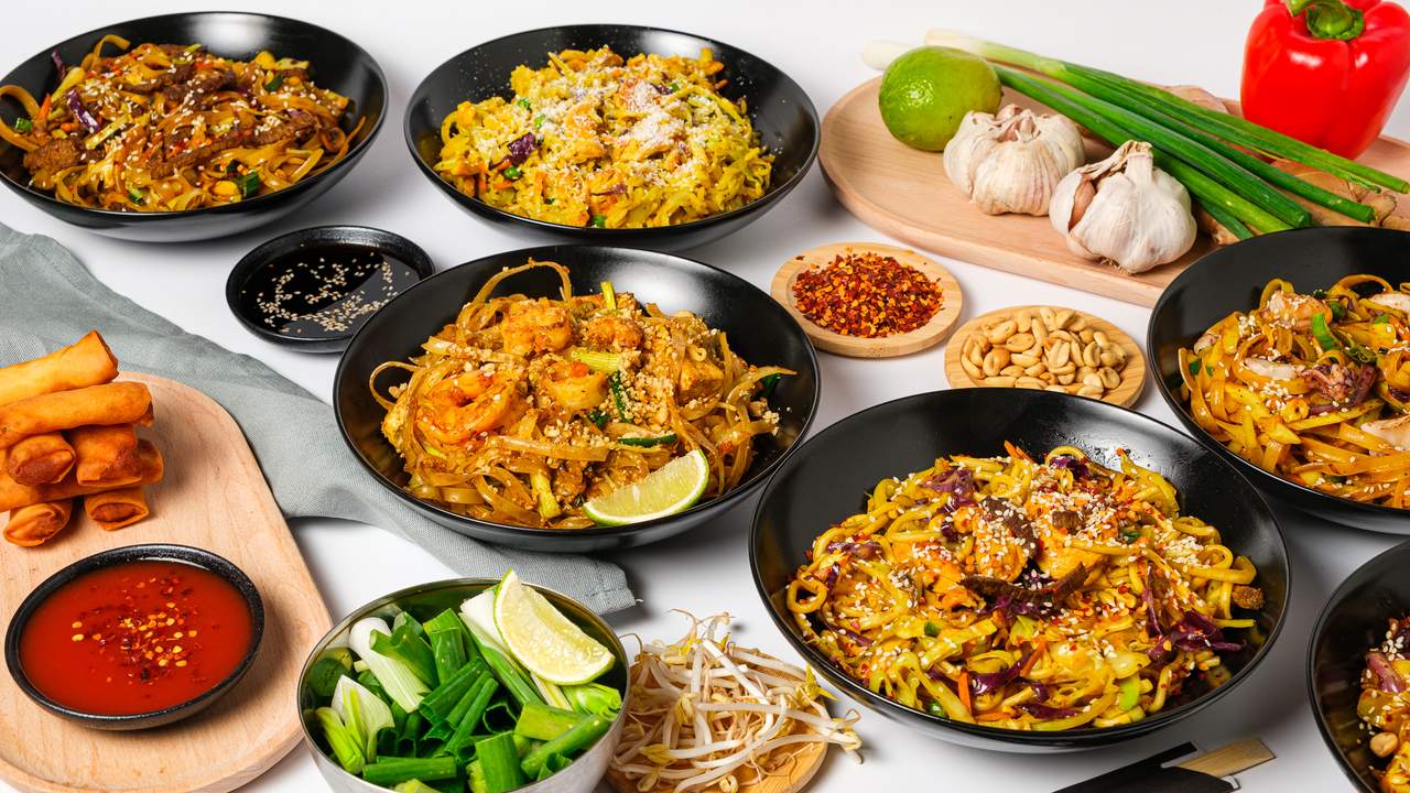 Piletina, sezonsko povrće, rižini noodli, tofu, sweet chili umak, limeta, đumbir, soya, sezam