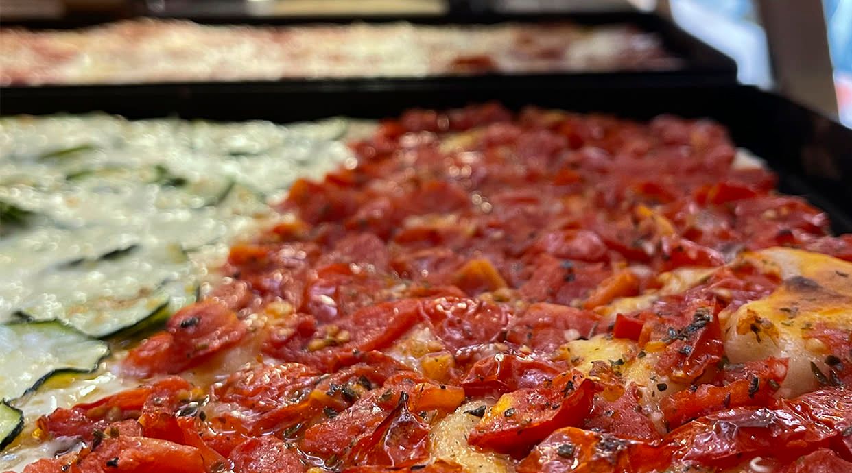 Mozzarella, Peperoni, Melanzane, Zucchine, Funghi Champignon, Sale, Olio EVO