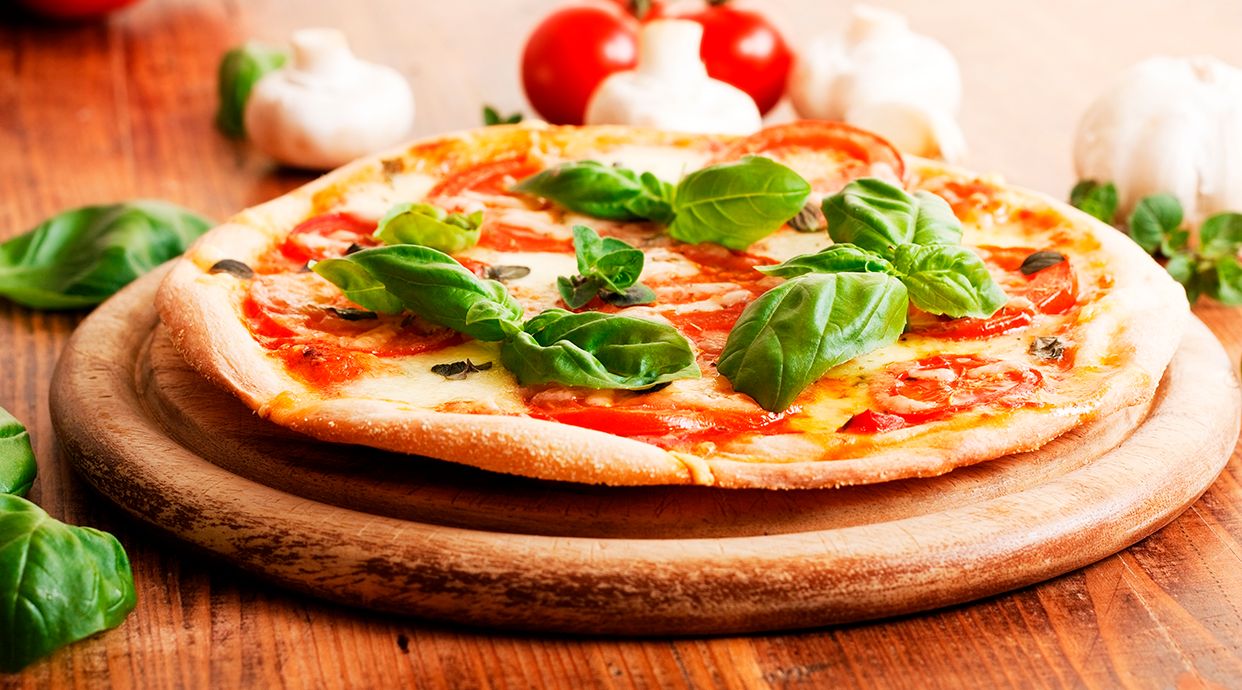 Pomodoro, mozzarella, carciofini, olive, funghi e prosciutto crudo