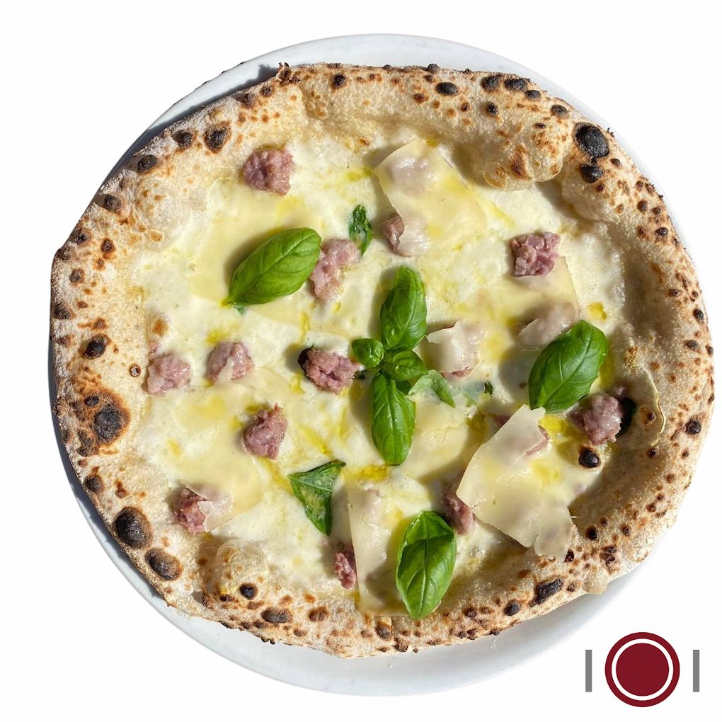 Con pomodoro, mozzarella fiordilatte, salsiccia, porcini trifolati