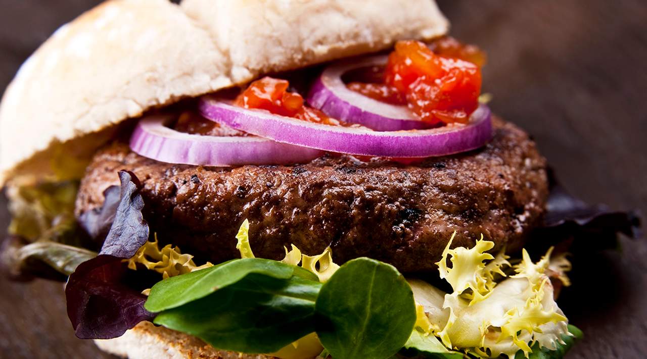 Maionese, hamburger bovino, formaggio cheddar, pomodoro, condito con olio Evo, sale, pepe ed origano.