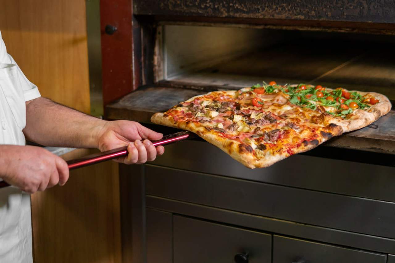 pomodoro, mozzarella, funghi, salsiccia, carciofi, prosciutto e olive