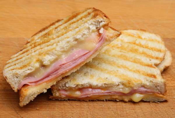Panino con prosciutto e mozzarella piastrato