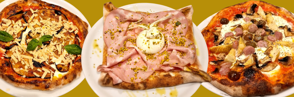 Salsa di pomodoro S.Marzano, mozzarella fiordilatte di S.Giuseppe Jato, prosciutto cotto artigianale aromatizzato alla paprica, olio evo e basilico