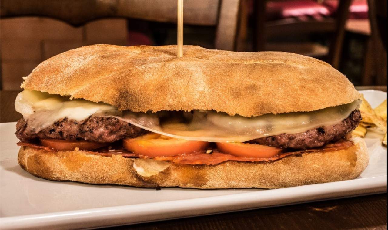 Hamburger di scottona, caciocavallo, salame Napoli, melenzane a funghetto