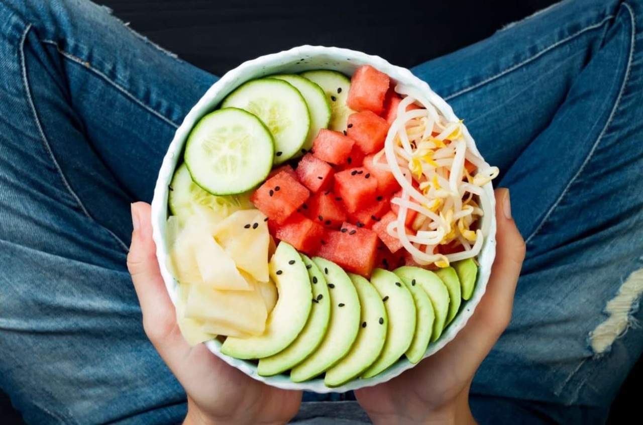 Riso bianco, salmone crudo, avocado, mango edamame, cetriolo, salsa healthy soia, guacamole, sesamo