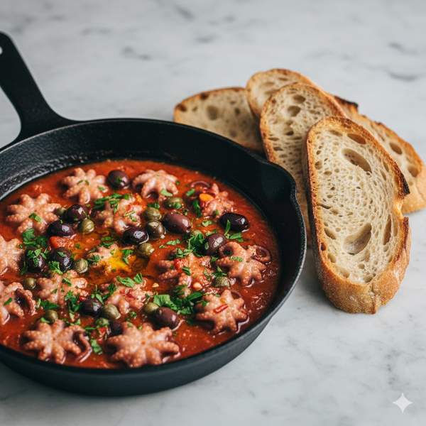 Moscardini o totanetti affogati alla ligure con nostro pane rustico cotto su pietra