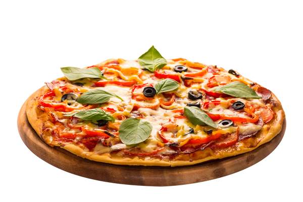 Pomodoro, mozzarella fior di latte, salame piccante, olive, peperoncino