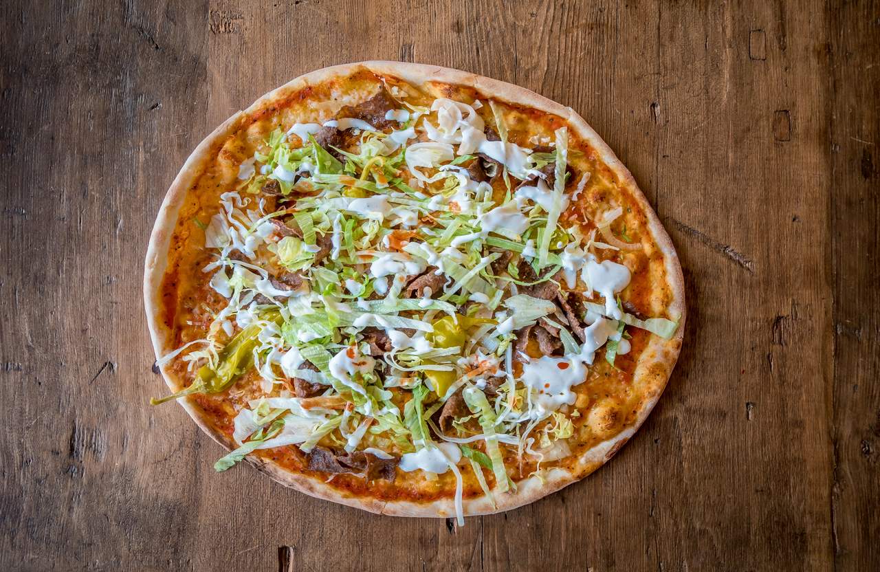 Pomodoro, mozzarella, carciofini, olive, funghi, prosciutto crudo