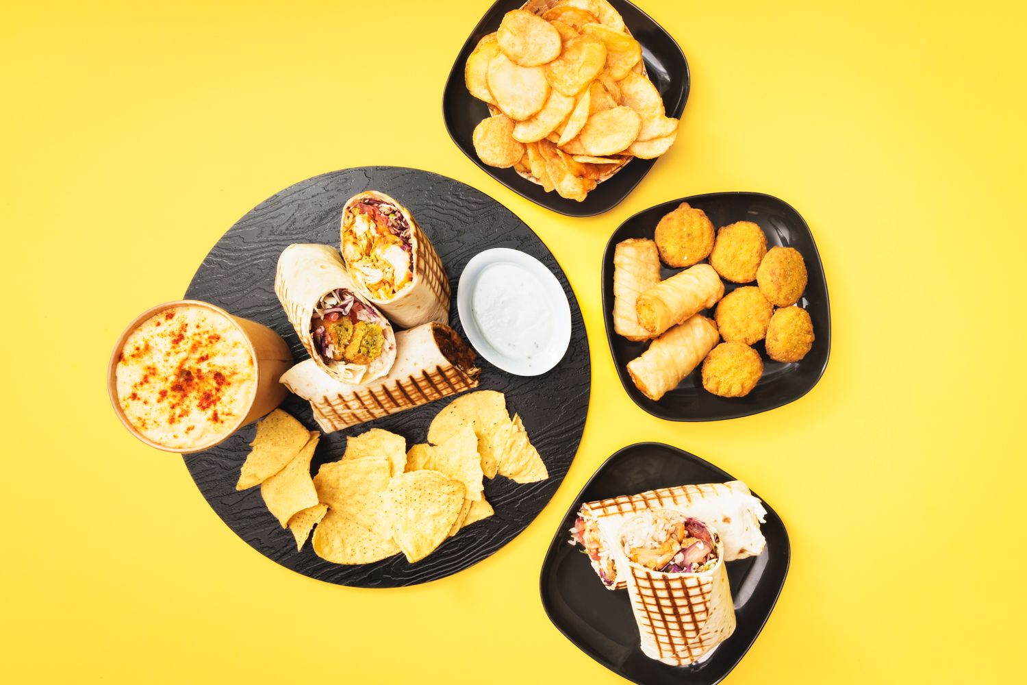 Tortilla di frumento ripiena di shawarma di pollo speziato, formaggio cheddar original, patate stick private reserve lambweston e le tue salse a scelta.