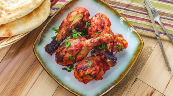 Chicken marinated in yogurt and spices and then grilled chicken leg