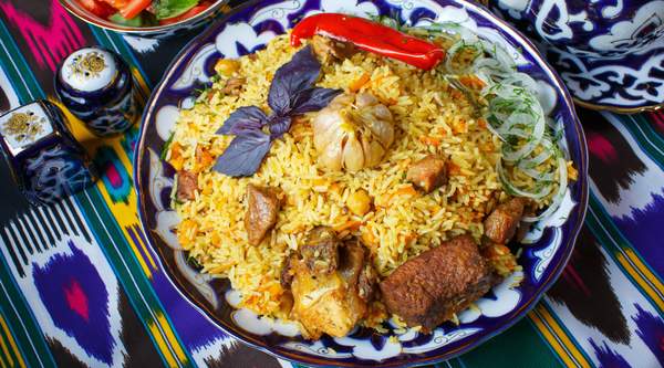 Rice cooked in broth, piece of beef, mixed spices and other ingredients
