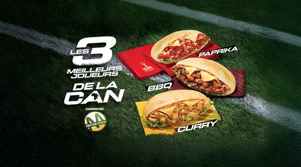 Poulet Curry, Fromage cheddar, Andalouse sauce, Laitue verte, Oignions, Frites, , , , , ,