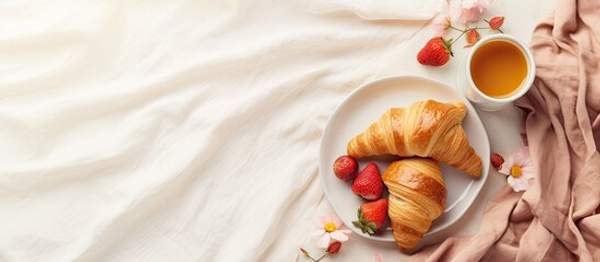 Pain au chocolat, bol de semoule à l'huile d'olive, jus d'orange, boisson chaude au choix