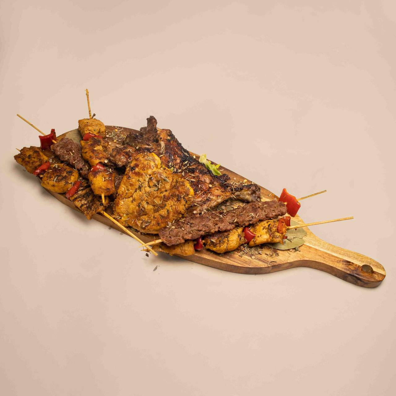 2 brochettes poulet au feu du bois+1 brochette viande hachée au feu du bois +2 nuggets + riz basmati + zarlouk +frite
