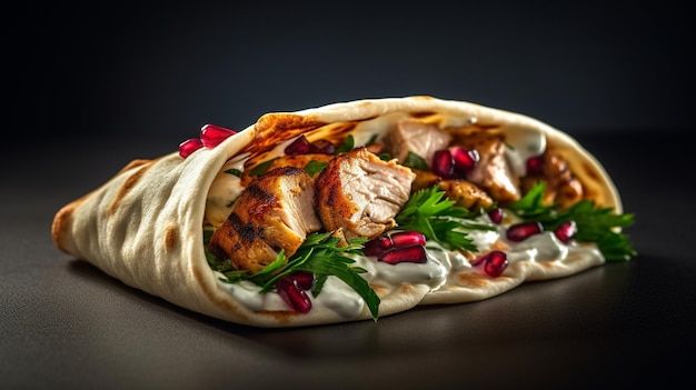 Poulet grillé coupé, crème à l'ail, pain Saj/Markouk