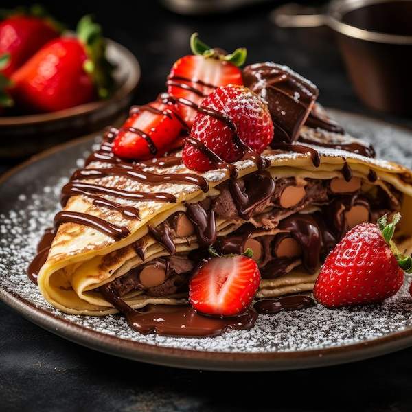 Crêpe nutella banane avec chocolat chaud fondu à l`ancien