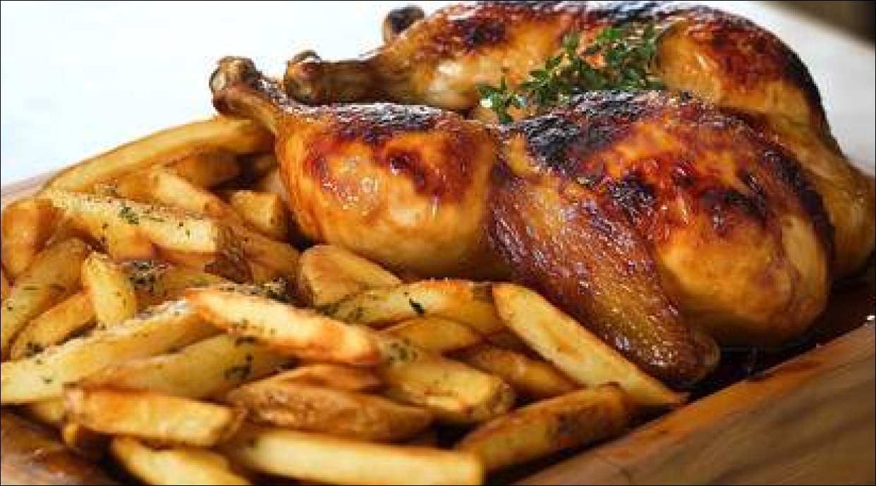 1/4 Poulet rôti, servi avec riz, frites, sauce