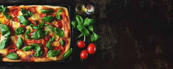 Sauce tomate aux herbes, oignons, dinde fumée, poivrons, fromage