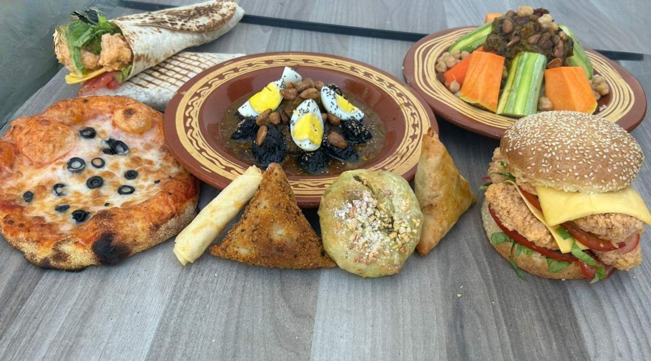 Msemen, poulet, sauce rfissa, lentilles, œuf, oignon