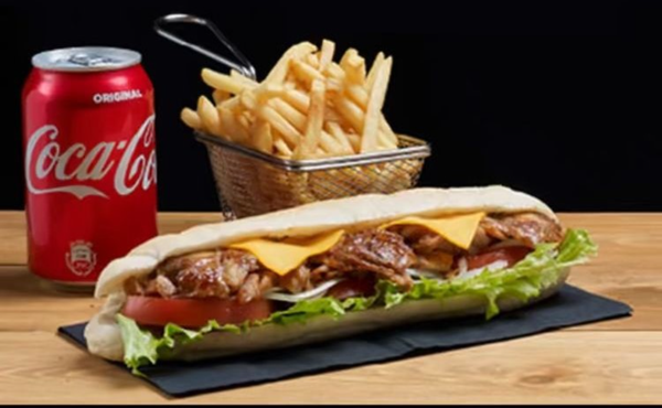 Kebab, frites, crudités au choix boisson