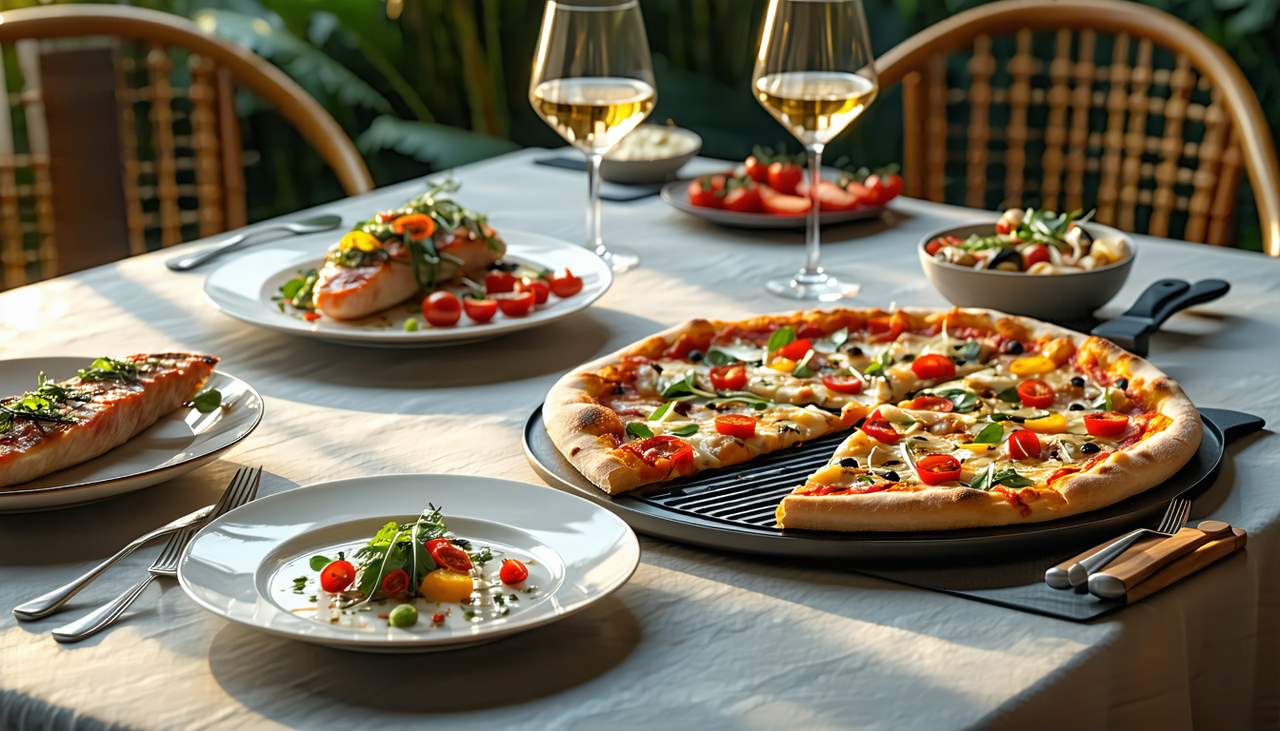 Pizza garnie de fruits de mer, mozzarella, sauce tomate