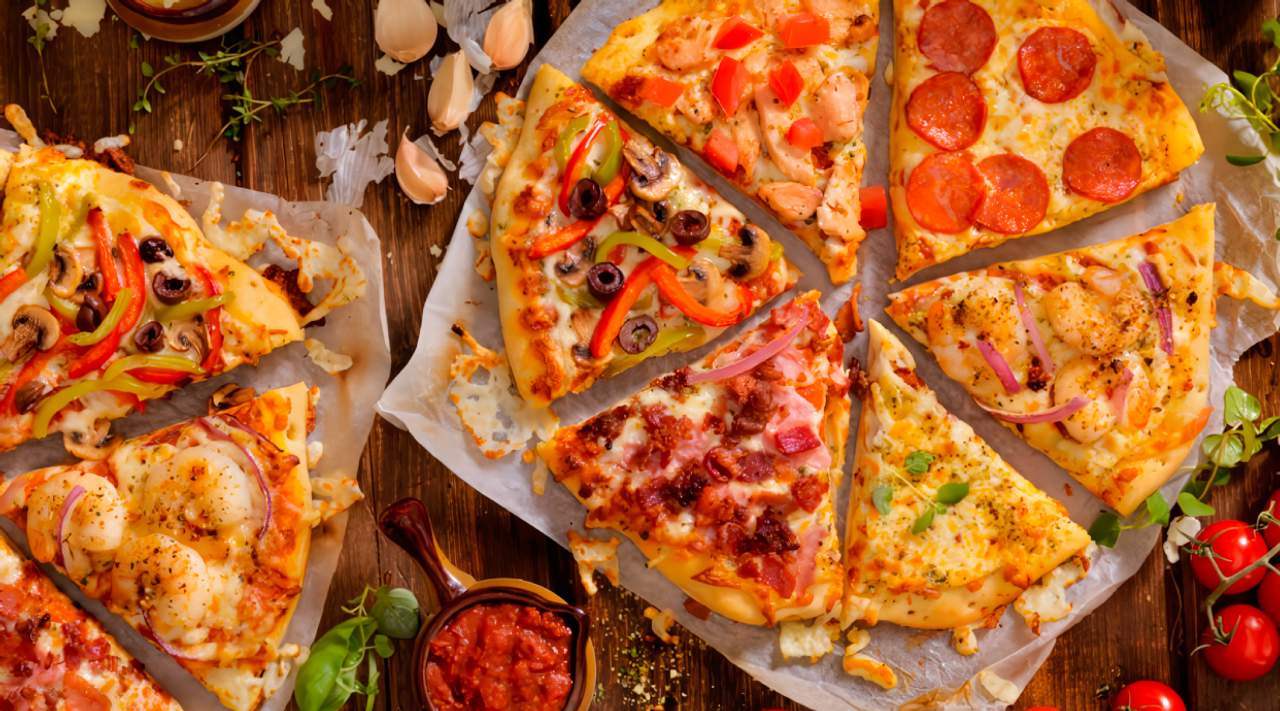 Sauce tomate, poulet, viande hachée, fruits de mer, végétarienne, fromage, origan