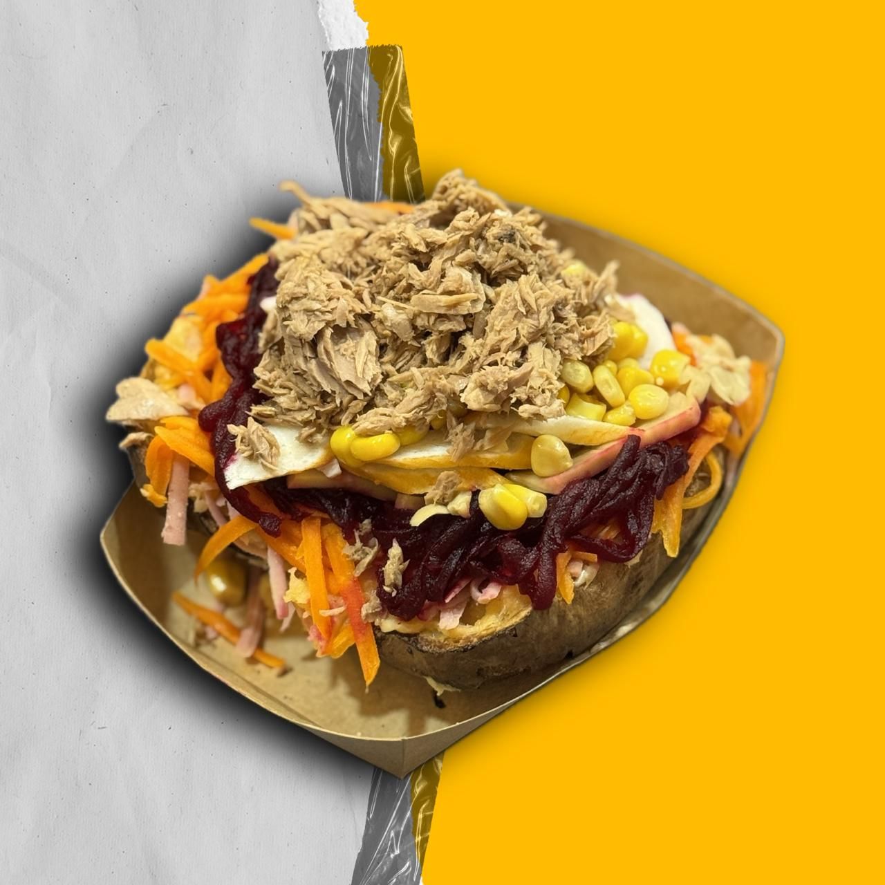 Special Patata Asada, potatoes, mixed with special butter and cheese with Thon and chosen toppings