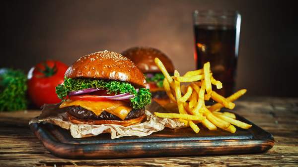 Senf, kecap, majonnaise, pickle, pmfrit, sprite
