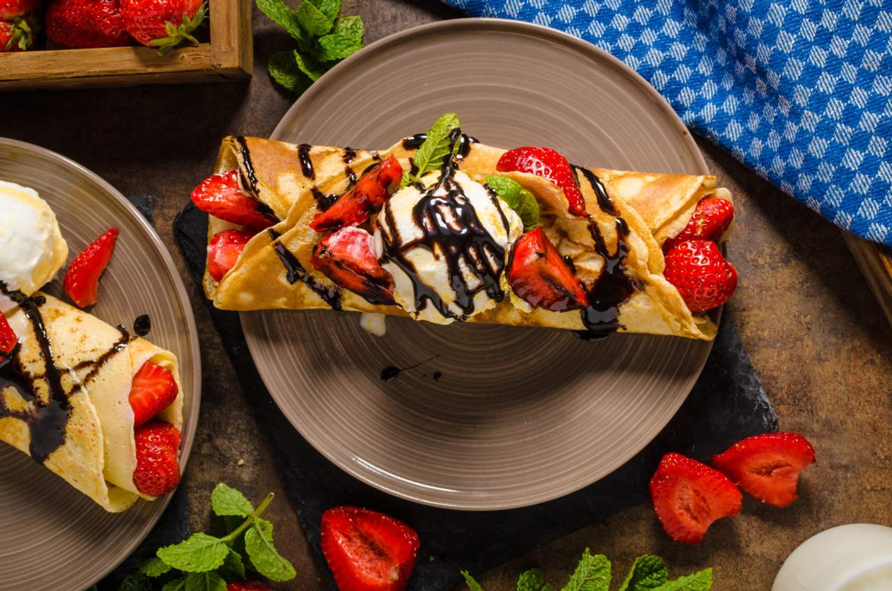 mini holandske palačinke sa dodatkom sezonskog voća, topingom, nutellom