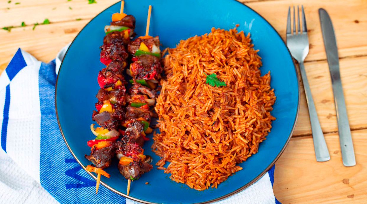Classic Nigerian-style fried rice with spiced chicken or turkey for a flavorful combo