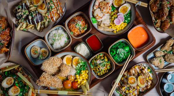 olej palony czosnek, dynia w panko, tofu, menma, pieczone pomidorki, pak choi, kukurydza, baby kukurydza, marynowane jajko, lotos, dymka, sezam, nori, nitki chili Gramatura : 800g