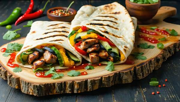 4. TORTILLA AMERICAN Z SEREM (mięso, frytki, sos)
