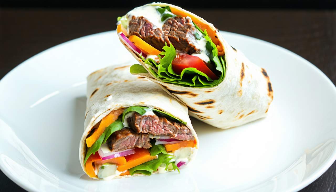 tortilla, mięso, warzywa, sos *zdjęcie poglądowe