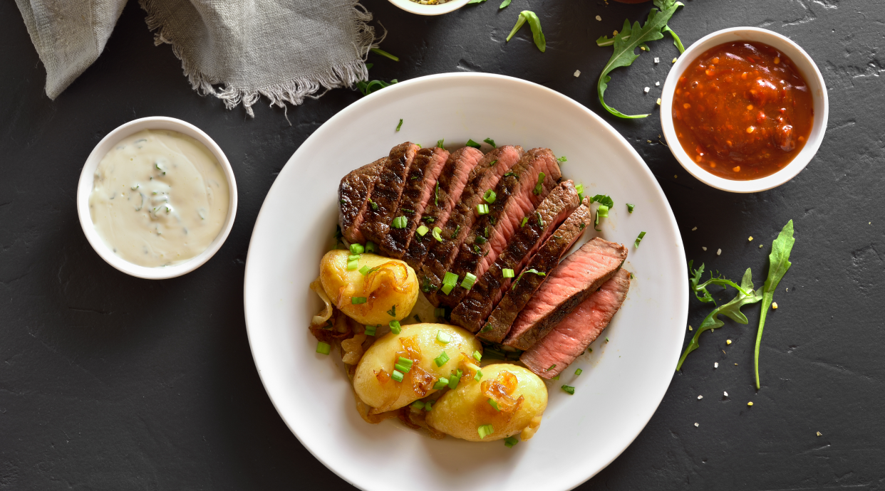 Stek z polędwicy wołowej z warzywami z grilla i sosem z tuńczyka (320g)