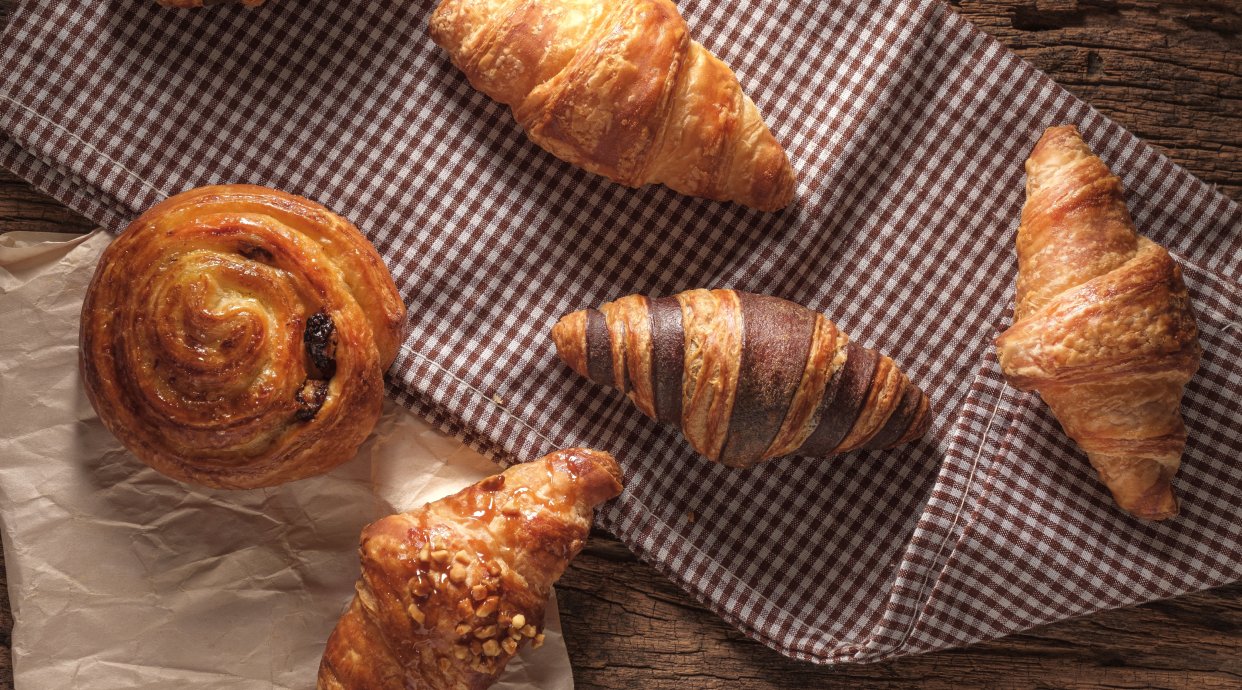 Croissant úmido de massa brioche recheado com nutella